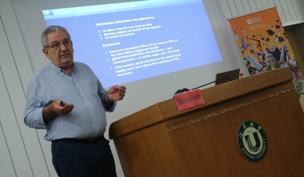On Nov. 29, Dr. Seamus Higgins from University of Nottingham visited Jiangsu University. Dr. Higgins delivered an academic lecture named Food Revolutions; Past, Present and Future.Prof. Zou Xiaobo, Dean of School of Food and Biological Engineering, hosted the lecture and introduced our school. More than 60 Sino-foreign faculty members and students of the school attended the lecture. He also visited museum of our university.