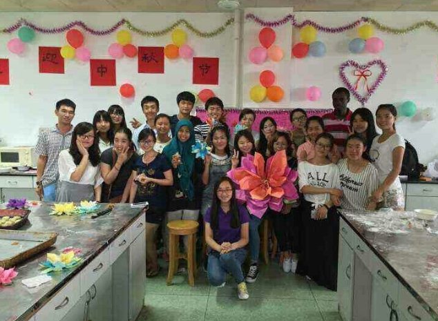 Both the Chinese and overseas students participated in the moon cake making activity. The history and the importance of mid autumn festival was explained to the participants particularly to the overseas students. Songs and poems both in Chinese and English languages were delivered by some of the participants. Some of the Chinese students demonstrated to the overseas students on how to make the moon cake. Then every participant produced their own moon cakes. After the making of the moon cake, everybody sat together to eat the moon cake. It was very delicious!