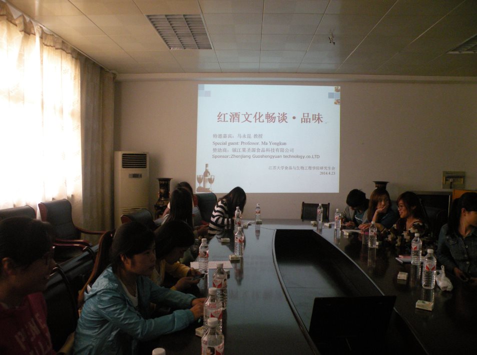 On April 23, 2014, Wine Culture Salon was held by graduate student union of School of Food and Biology Engineering. Professor Ma Yongkun was invited to attend this salon.