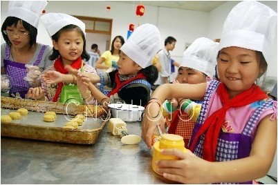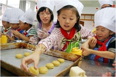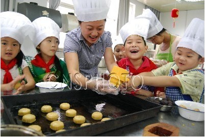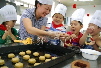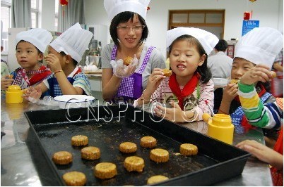 Students of our school teach children making moon cake in 2011-9-8 .From this activity, they understand more traditional culture of China.