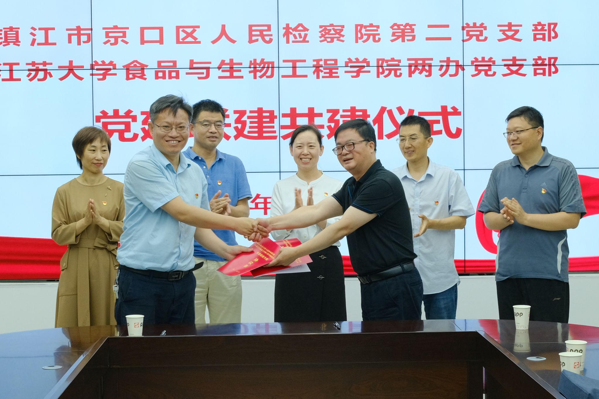 两办党支部与京口区检察院第二党支部签署校检合作共建协议。京口区检察院党组成员、政治部主任、党总支书记杨钰,党总支副书记、第二党支部书记张波,AV片