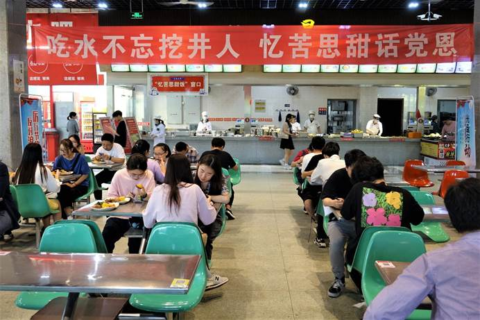 随后,在场师生一起观看了忆苦思甜知识展板,并一起吃了杂粮、野菜、咸菜等“忆苦思甜饭”。参与活动的同学纷纷表示会珍惜现在的幸福生活,脚踏实地,发挥红军吃苦耐劳的精神,为中华民族伟大复兴贡献自己的青春力量。