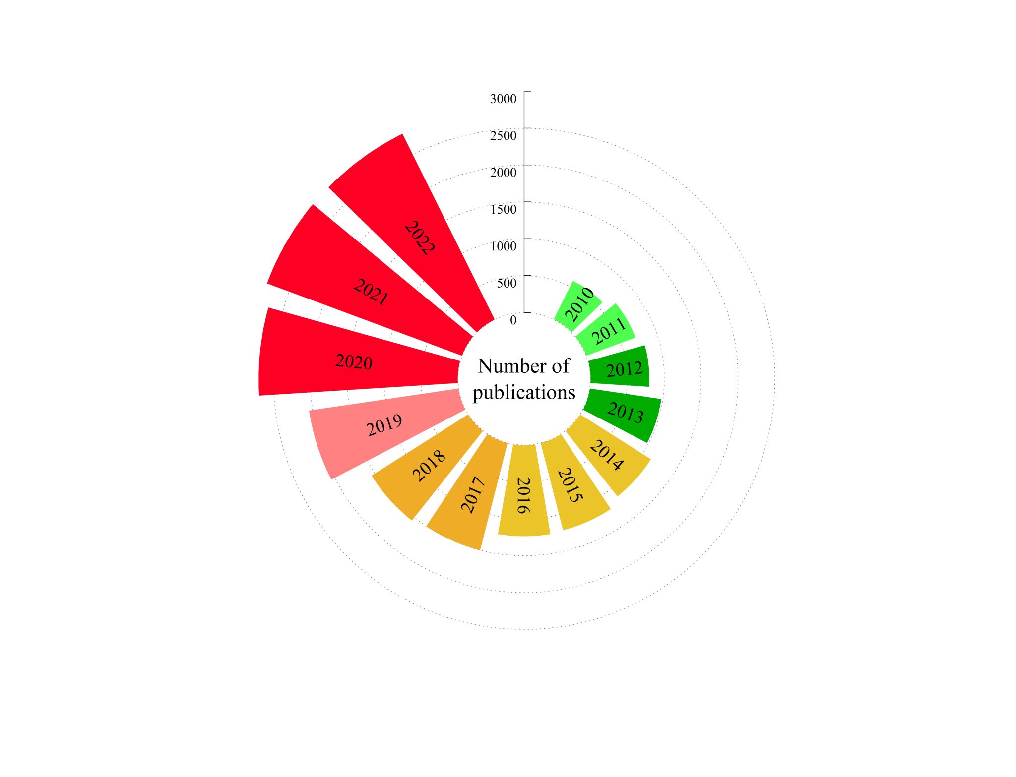Fig.1 Evolution of publications about UAE since 2010 (The search terms used for this chart were ultrasonic extraction or ultrasound extraction, and the database is WEB OF SCIENCE)
