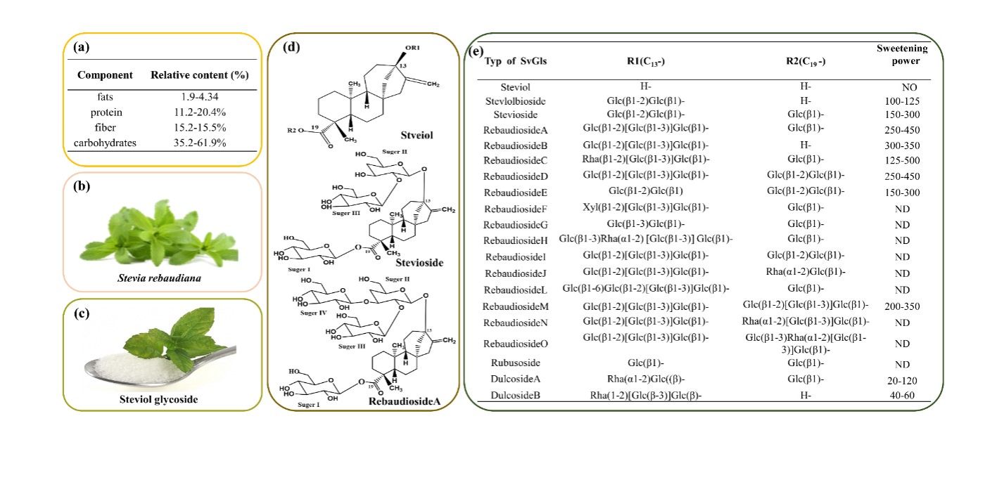 近年来,高糖高热量饮食所引起的健康问题诸如糖尿病,高血压,肥胖等日益凸显,并呈现低龄化趋势。开发具有高甜度,低热量/无热量的传统甜味剂(蔗糖)替代品已经成为当下的研究热点之一。人工甜味剂虽然是目前代糖行业的“主力军”,但是它们的安全性问题一直存在较大争议。然而从植物基甜菊叶中提取的低热量甜菊糖苷具有安全、性质稳定、甜度高、成本低等特点被称为“世界第三代天然糖源”。目前我国已经成为世界上最大的甜菊糖生产国和出口国。