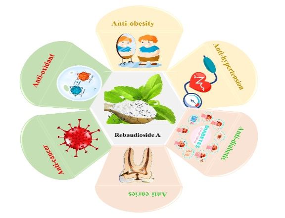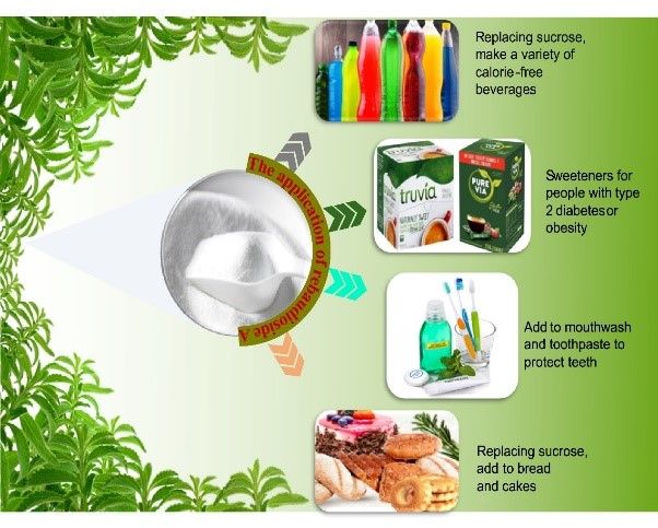 Figure 2. Multiple physiological functions and health benefits of Rebaudioside A | Figure 3. Some applications of rebaudioside A in the food industry |