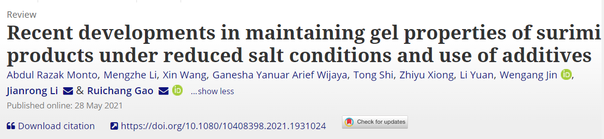 高瑞昌教授课题组在食品顶级期刊(TOP4)Critical Reviews in Food Science and Nutrition在线发表题为“Recent developments in maintaining gel properties of surimi products under reduced salt conditions and use of additives”的综述,系统阐述了如何在减盐条件下成功保持鱼糜凝胶性能的最新进展,为低盐和功能性鱼糜制品的未来发展提供参考。AV片
