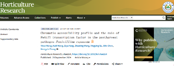 张红印教授团队在植物学领域Top期刊《Horticulture Research》上在线发表论文“Chromatin accessibility profile and the role of PeAtf1 transcription factor in the postharvest pathogen Penicillium expansum”。AV片
