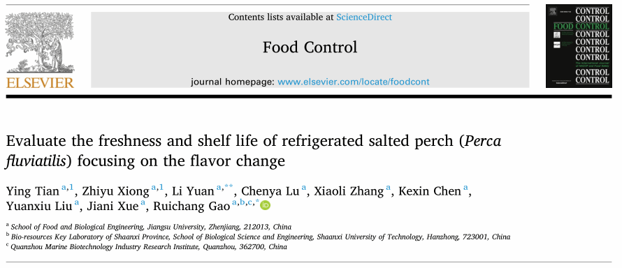 高瑞昌教授团队在国际期刊《Food Control》(Q1,IF2025=5.6)上发表题目为“Evaluate the freshness and shelf life of refrigerated salted perch (Perca fluviatilis) focusing on the flavor change”的研究型论文。AV片
