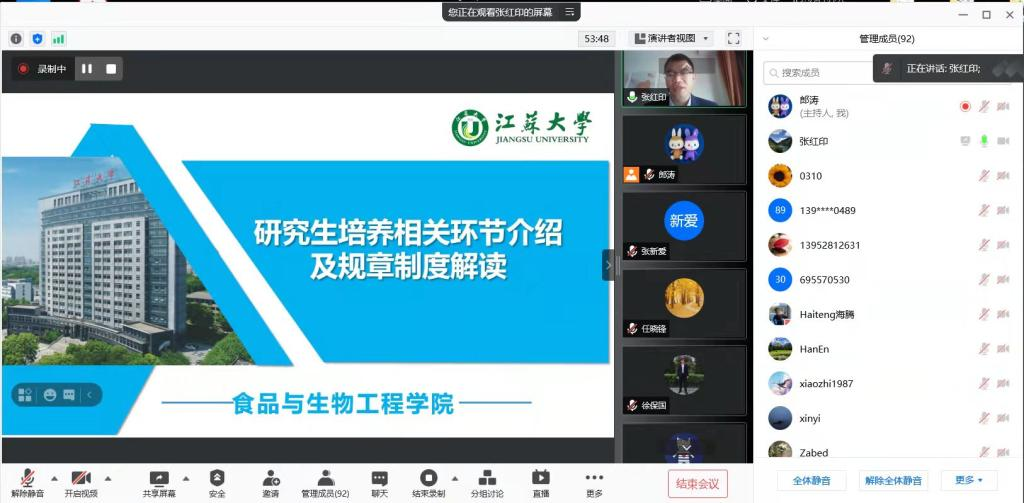 相关的文件政策,使广大导师对研究生的整个培养环节有了全面系统的了解。张院长还带领大家认真学习了《江苏省研究生导师职业道德规范“十不准”(试行)》、《AV片