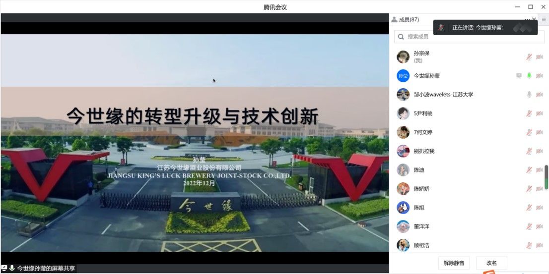 举办的“产业教授进校园活动”顺利举行,本次会议邀请了江苏省产业教授、江苏今世缘酒业股份有限公司勾储中心孙莹主任在线上为同学们做了“今世缘的转型升级与技术创新”的专题报告。AV片