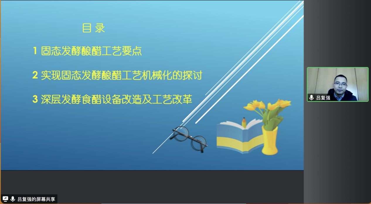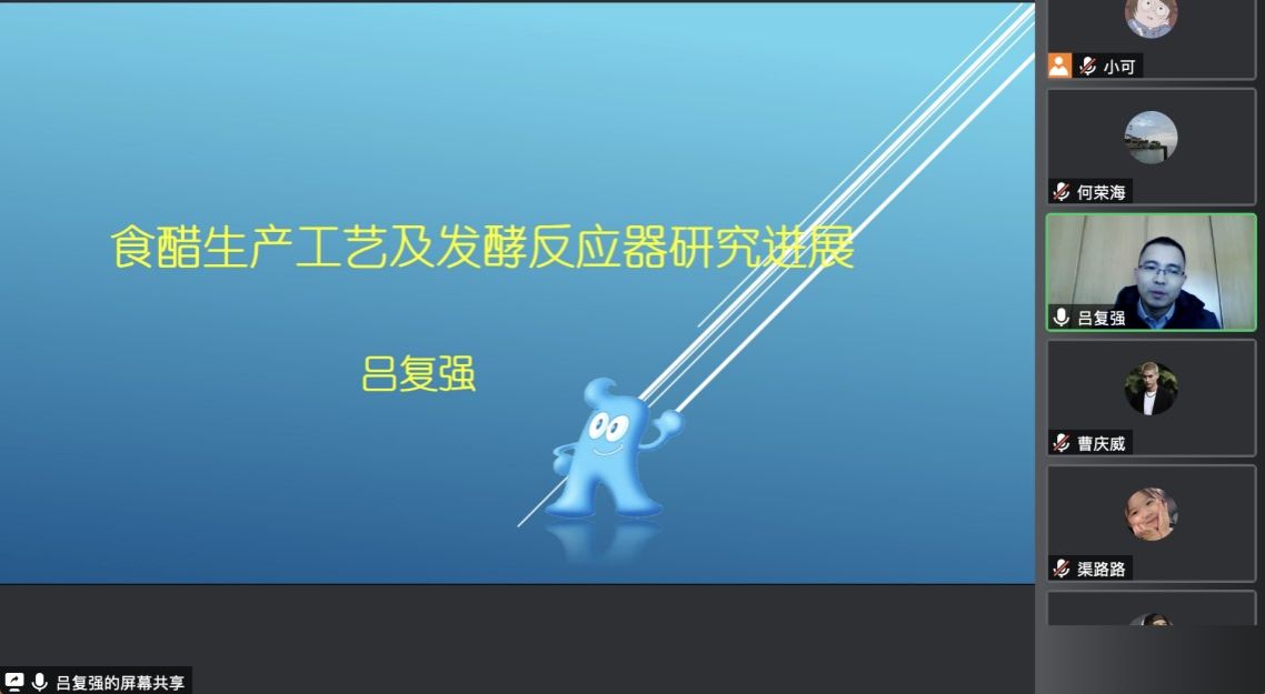 举办的“产业教授进校园活动”顺利举行,本次会议邀请江苏省产业教授、江苏恒顺醋业股份有限公司企业管理部部长吕复强做 “食醋生产工艺及发酵反应器研究进展”的专题报告,报告通过腾讯会议直播。食品物理加工研究院常务副院长何荣海教授主持会议,AV片