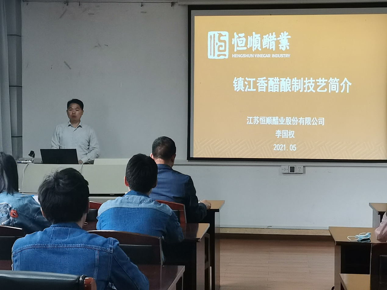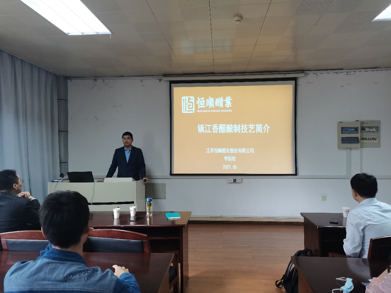 副院长张红印教授主持,邀请江苏省恒顺醋业股份有限公司总经理、江苏省产业教授李国权为同学们做专题报告——镇江香醋酿制技艺简介,共有50余名师生参与本次活动。