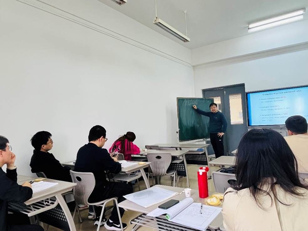 课堂上,王博老师以标准流利的英语口语展开教学,将理论知识与实际应用紧密结合,通过展示大米及其加工成品,帮助学生直观理解课程内容。他系统讲解了大米的品质特性、筛选方法及加工工艺流程,并采用互动式教学,通过提问与讨论激发学生兴趣,课堂氛围活跃,教学效果显著。课后,参与观摩的青年教师积极向王老师请教授课技巧与经验,纷纷表示受益匪浅,为今后的教学工作提供了宝贵借鉴。