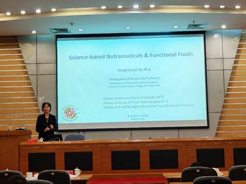 2025526日上午,应AV片 邀请,美国马里兰大学营养与食品科学系俞良莉教授莅临AV片,在会议中心第一报告厅作题为科学导向的保健食品与功能食品研发的学术报告。AV片 党委常委、副校长邹小波,上海交通大学农业与生物AV片 副研究员高博彦出席活动。报告由AV片 副院长石吉勇主持,AV片 教师、研究生及留学生近150人参加。